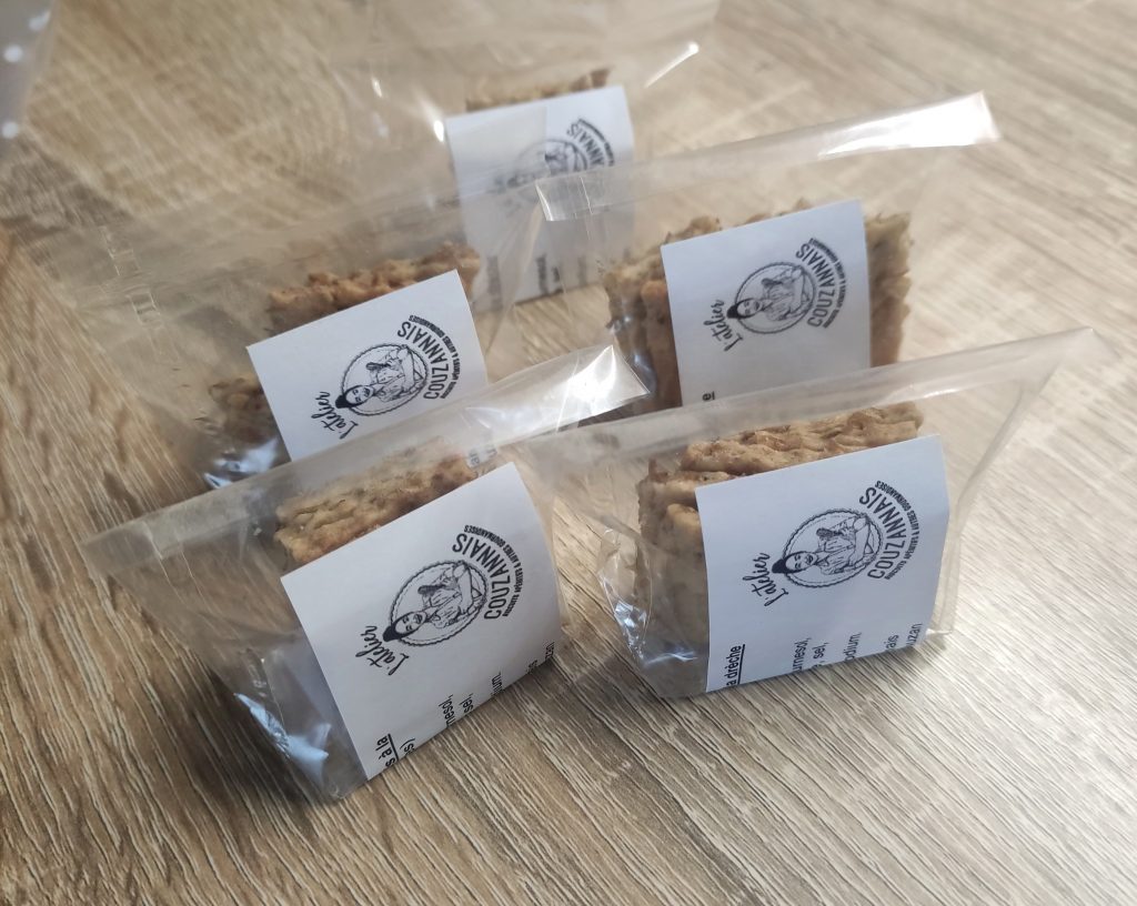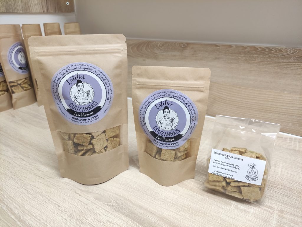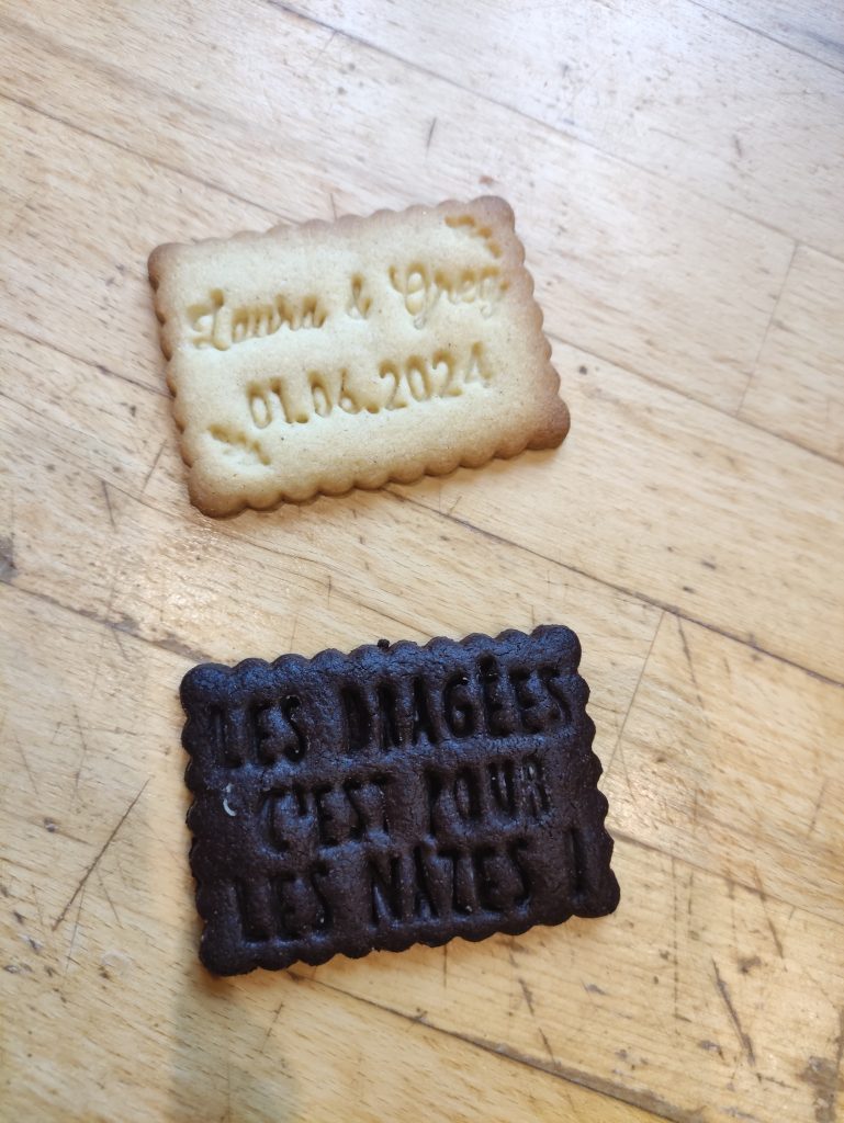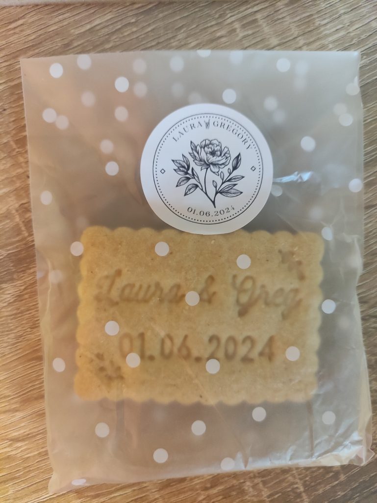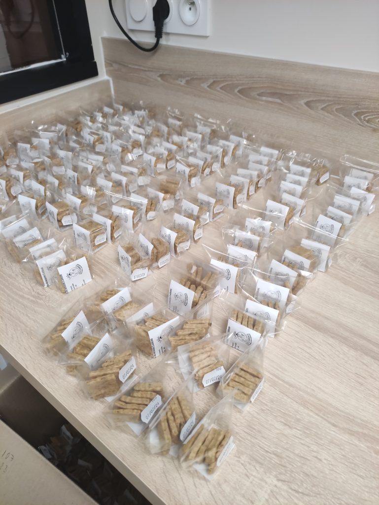 Personnalisation de sablés sucrés natures et cacao, ensachage à façon pour le client.